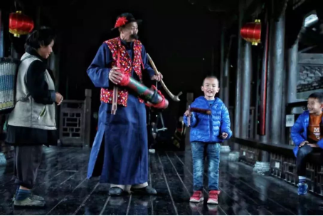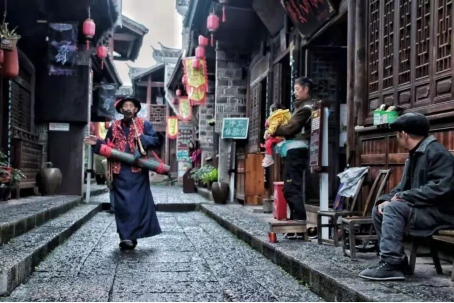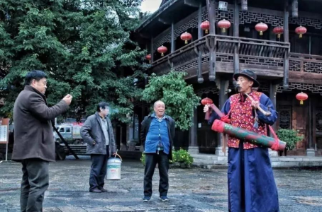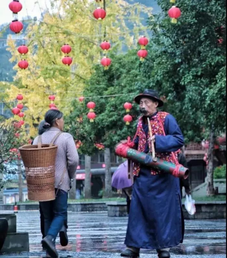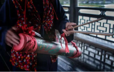 余老人是古鎮里唯一會打漁鼓筒的老人,在鎮上備受尊敬,每當有貴客來臨或是喜事來臨時,便能在鎮上瞧見老人手持漁鼓,邊說邊唱的場景。
