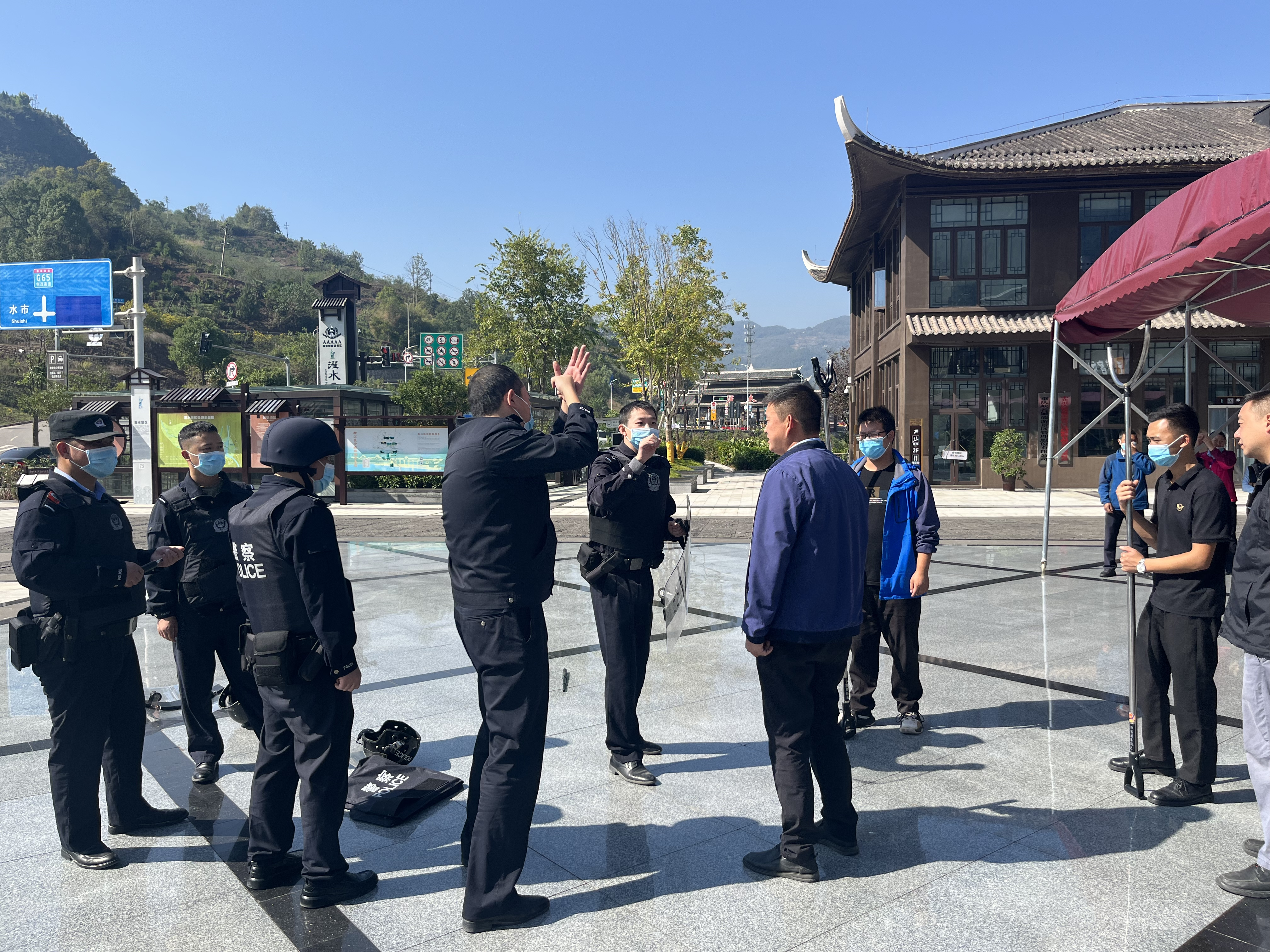 為進一步提升景區安保人員快速反應、協同聯動和應對景區突發事件處置能力,10月19日,濯水景區聯合屬地派出所組織開展景區反恐防暴培訓及演練。