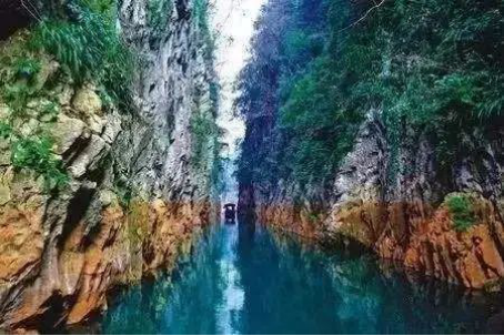位于重慶市黔江區(qū)馮家鎮(zhèn),距黔江城區(qū)18公里。因古驛道從此船渡過江而得名,峽谷全長(zhǎng)15公里。官渡峽沿峽兩岸懸崖峭壁,江水蔚藍(lán)清澈,清幽雅致,景致迷人。峽口石鐘乳奇形怪狀,泉水飛流直下,加上峽中白水泉,神女蜂等景點(diǎn),使官渡峽被譽(yù)為“小盆景”。