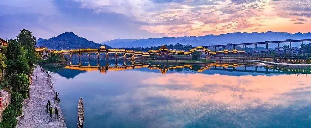 2020年8月23日11點(diǎn),“世界第一風(fēng)雨廊橋”——“重慶黔江濯水風(fēng)雨廊橋”下寬闊而清澈的阿蓬江面上,身穿民族服裝的“阿哥阿妹”俏生生地站在佩戴紅綢和大紅花的喜船上,在艄公的牽引下上演一場(chǎng)別開生面的鵲橋相會(huì),吸引了來自全國(guó)各地的游客駐足打卡拍照。 2020/8/27 13:00:57