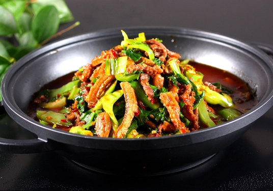 黔江雞雜是黔江煨鍋系列的代表菜,運(yùn)用土家烹飪方式,用雞腸、雞肝、雞心等雞內(nèi)臟器官為原料,并把雞肉切..